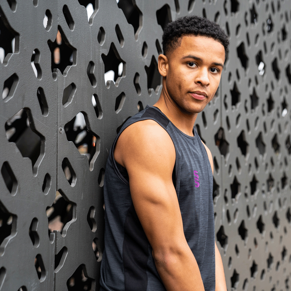 Melange polyester super stretchy material. Perfect for the gym - Great fit.